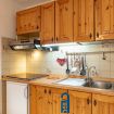 La cucina a vista è compatta ma completa, dotata di tutto ciò che serve, incluso un forno a microonde per preparare piatti veloci e gustosi.